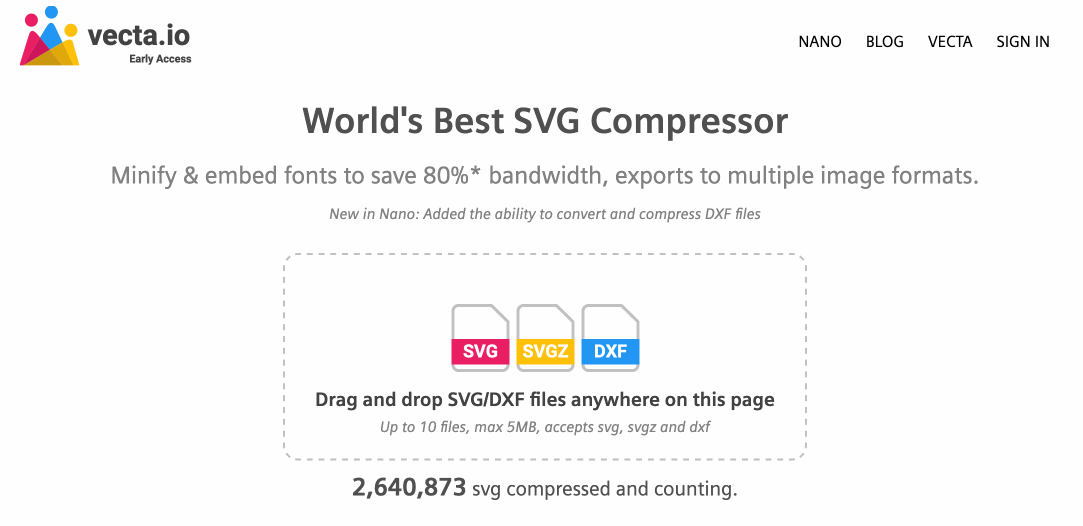 Drag-n-drop the SVG file, wait until it finishes compressing, then click Download. Use the new, compressed SVG file when uploading it to MSP.